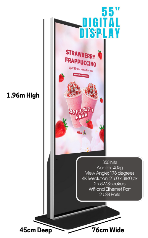 Create an immersive consumer experience, starting from only $199 per day for short term hire and $2,499 to purchase our 55″ Display. Check out our Pricing.
