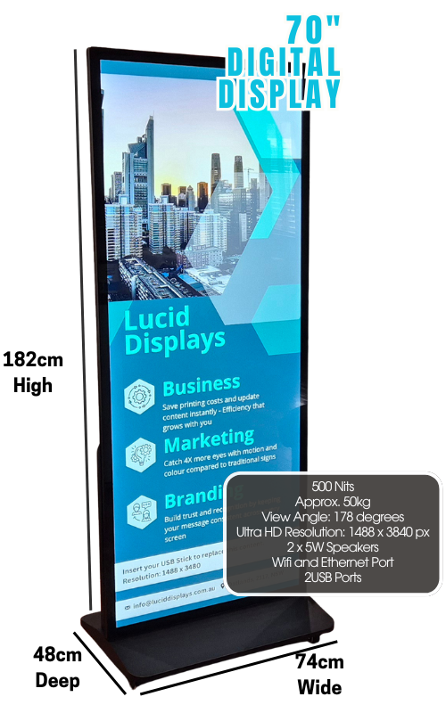 55 Inch, 65 inch and 70 inch Displays for Sale at great prices. Call 0455 555 115.